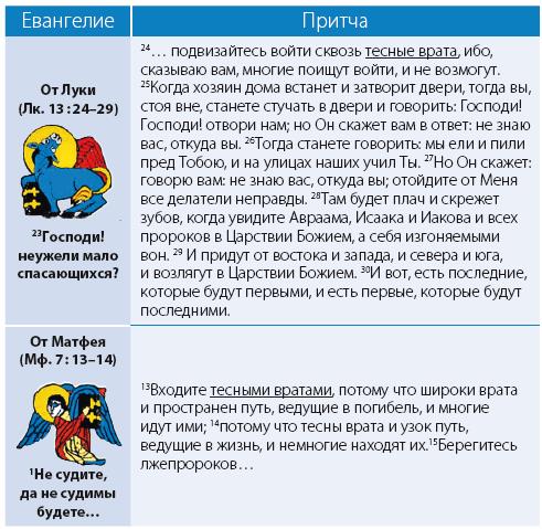 Во время путешествия Иисуса Христа в Иерусалим, когда Он проходил по городам и селениям и учил народ, некто, обратившись к Нему, сказал: «Господи! Неужели мало спасающихся?». Христос отвечал, что врата неба тесны, и нужно сделать усилие, чтобы войти в них[244].