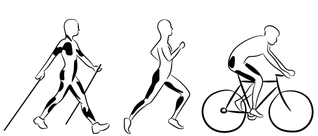 Оздоровительный эффектИсследования показывают, что скандинавская ходьба с палками положительно влияет на состояние здоровья людей. Для подтверждения обратимся к результатам исследований, проведенных немецкими врачами-учеными. Именно они внесли большой вклад в популяризацию нового вида любительского спорта. Ими были опубликованы результаты серьёзных исследований, которые свидетельствуют о высоком оздоровительном потенциале скандинавской ходьбы. Было установлено, что хорошо тренируются мышцы спины и плечевого пояса, в то время как при обыкновенном беге мышцы верхней половины тела мало задействованы. Ученые подсчитали, что при скандинавской спортивной ходьбе получают повышенную нагрузку около 90 % мышц человеческого тела, а при обычной ходьбе – только 70 %.