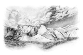 Через час вершина холма была достигнута и караван остановился на несколько минут, чтобы отдохнуть после трудного подъема.
