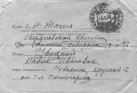 Оставив трехмесячную малютку на руках своей мамы Павлы Ивановны, сестры Ольги и брата Николая, она отважно ринулась в путь: хотя бы увидеть, узнать, что с ее бесконечно дорогим и любимым мужем. Ее не могут прогнать просто так. У нее есть официальный документ, выданный НКВД Свердловской области, на право свидания. Ей, конечно, очень страшно, что уж тут говорить. Такое время, такой далекий путь. Кругом воровство, бандитизм, люди просто без вести пропадают. Правда, взять у нее почти нечего – пара теплого белья и немного сухих продуктов, что разрешены. Это – для него.