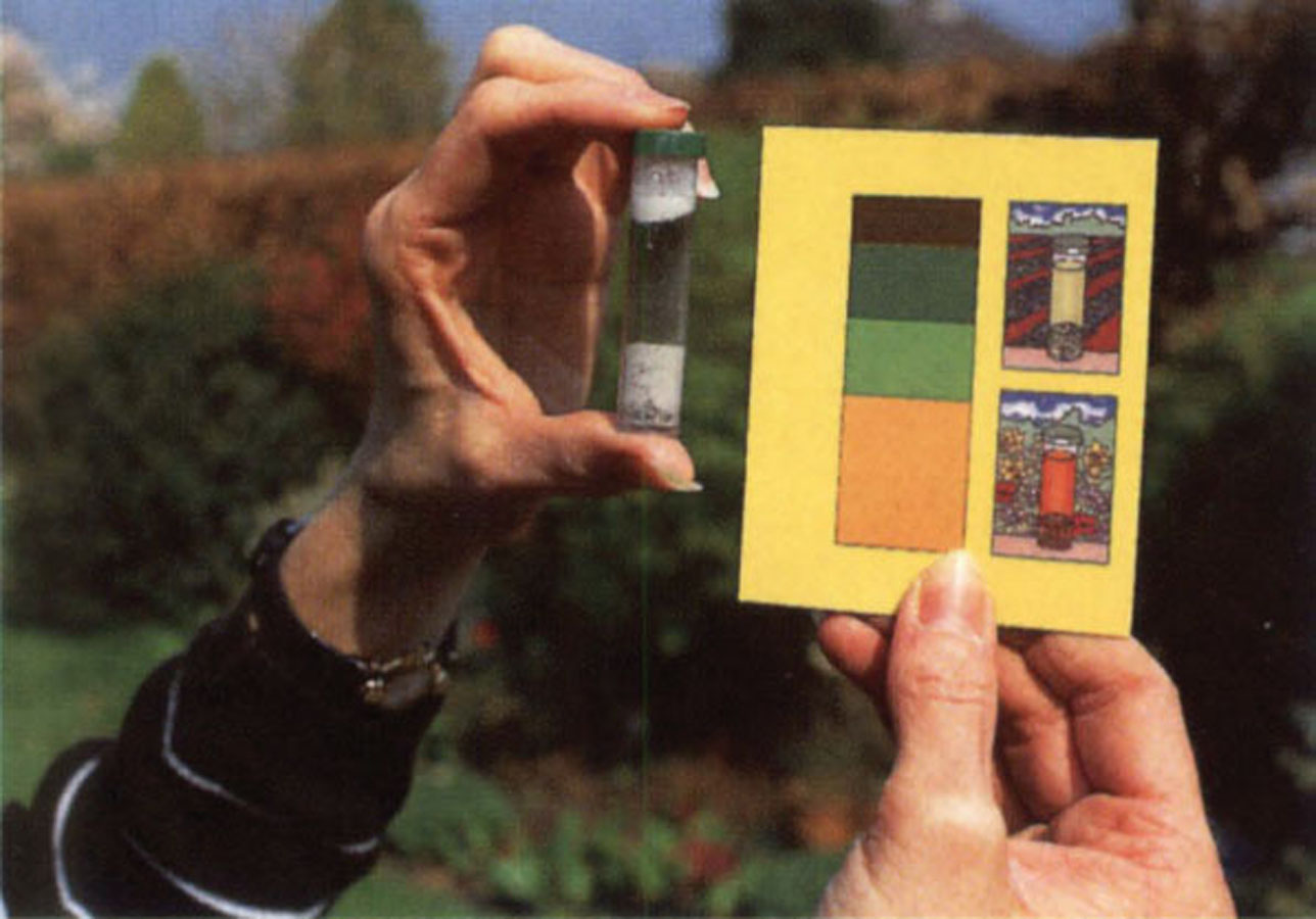 3 Match the resultant colour against a colour chart supplied in the kit. This will correspond to a pH value and tell you to what degree your soil is acid or alkaline. Neutral soil has a pH of 7; a lower number indicates an acidic soil and a higher number, an alkaline soil.