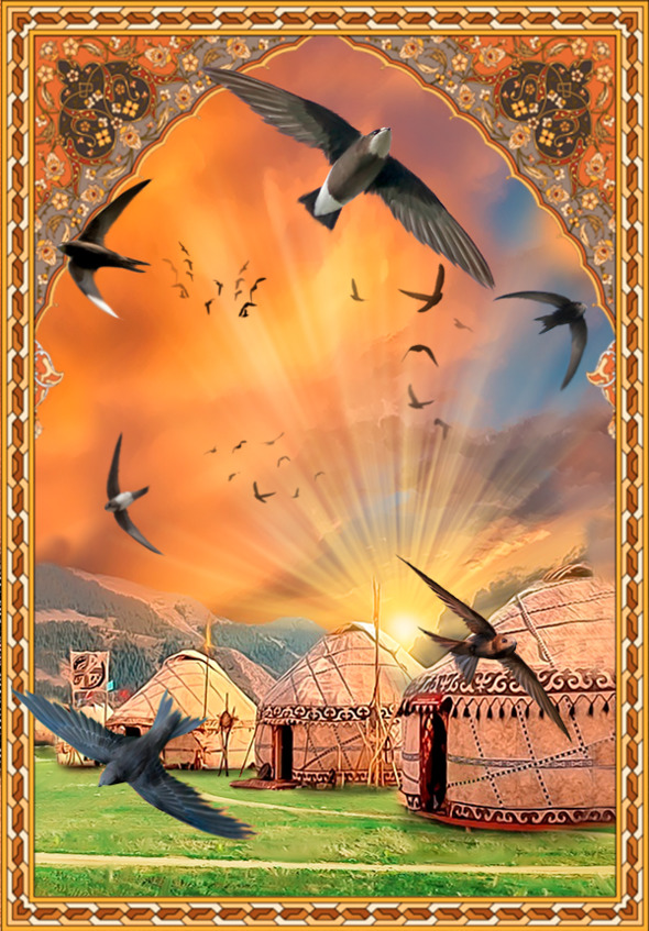 Неугомонные стрижи разбудили всё стойбище, пели звонкие песни и танцевали в небе. Первыми проснулись бабушки и мамы, принялись разжигать очаги и месить тесто. Проснулись дедушки и отцы, стали чистить доспехи и кормить домашних животных. Позже всех пробудились дети. Кто – то – капризничая: «Можно поспать ещё хоть чуть-чуть», а кто – то – быстро и без слов, как воины нашего султана. Дети одевались, заправляли постель, умывались и с удовольствием уплетали чибрики* и белиши*.
