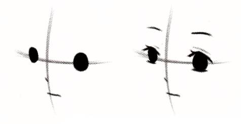 Even if you want to draw a particularly simple eye, you can't omit the positioning of the facial features. Use cross hair to mark the orientation of facial features.