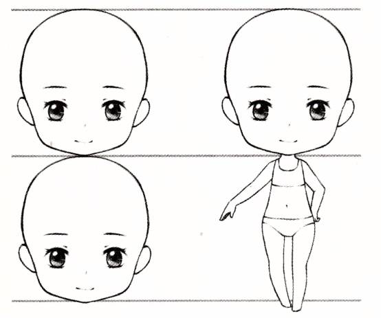Move the length of one head vertically under the first head to determine the position of the second head length. A chibi with a body length equal to one head can be called a chibi with two heads.