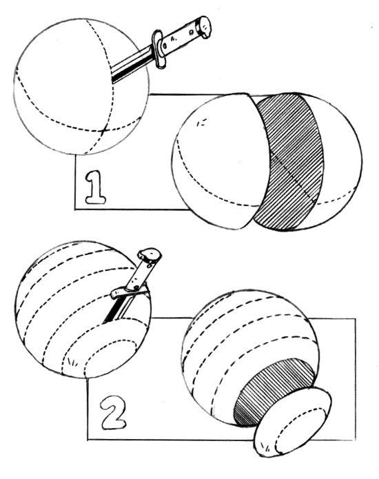 Разрезать сферу пополам – это не то же самое, что разрезать ее на сегменты. Понимание разницы будет очень полезно для нас при рисовании головы, поскольку наш череп имеет форму сферы.