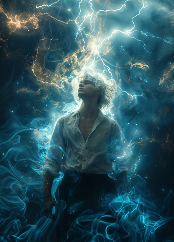 Он прикоснулся к подрагивающей двери, и та распахнулась. Свет преобразился в образ пожилого человека в длинных белых одеждах. Тот подошёл к Элберту.