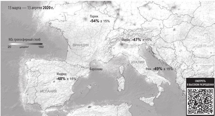 Всего за несколько недель фактически глобального шатдауна в некоторых крупнейших городах мира резко упал уровень загрязнения. В таких европейских городах, как Милан, Рим, Барселона и Париж, уровень диоксида азота снизился примерно на 50 %.