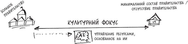 Многие консерваторы утверждают, будто большое правительство неэффективно, а частное предпринимательство и свободный рынок позволяют лучше распределять ресурсы, когда речь идет об экономическом росте. В основе данной идеи лежит представление о том, что экономический рост – это хорошо, независимо от того, как он влияет на равенство и доступность благ. Государственные услуги и распределение ресурсов при помощи ИИ перевернут эти старые представления с ног на голову. Крупные и весьма эффективные правительственные механизмы станут экономически жизнеспособными, поскольку автоматизация резко сократит влияние государства и бюрократии.