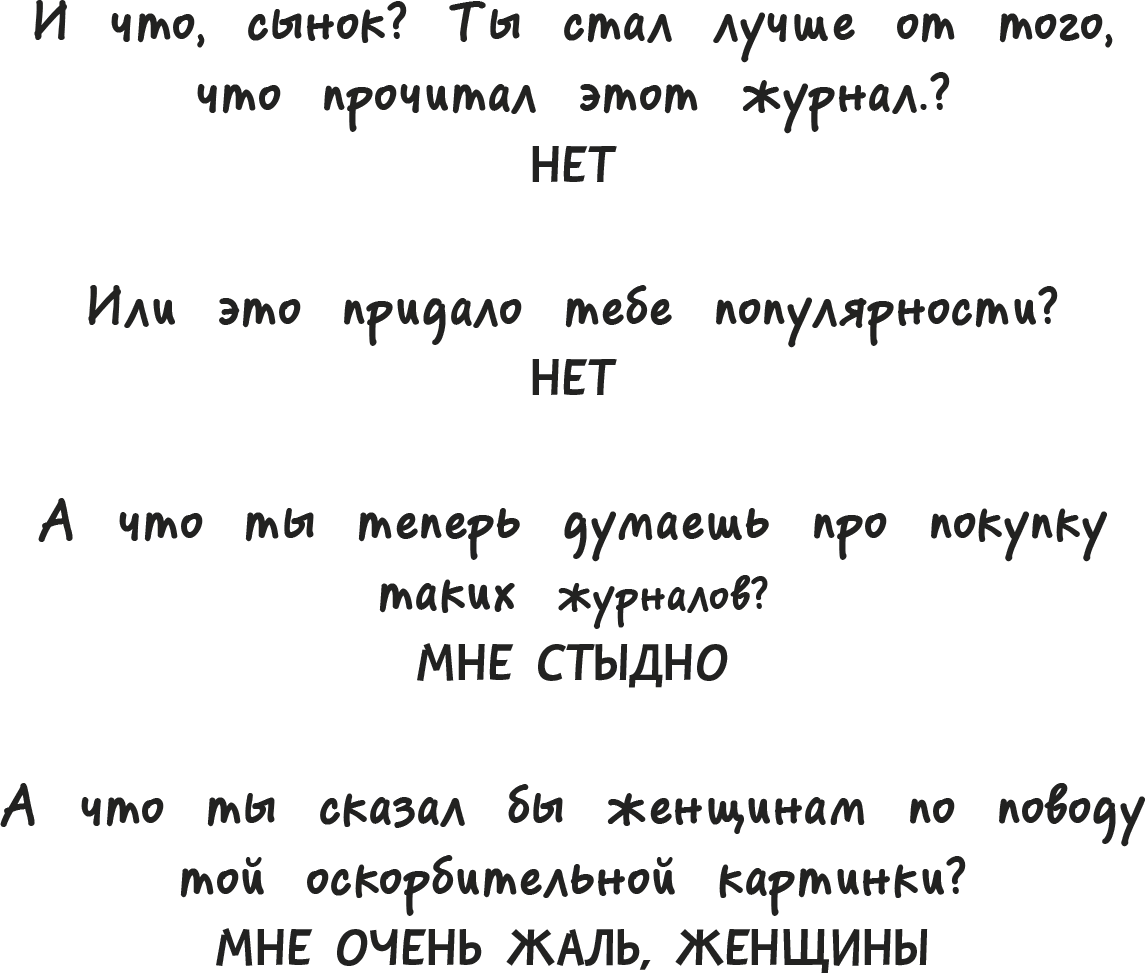 Я видел этот журнал и скажу: ничего там такого не было. Тетка, бикини, живот, капот. Но мама «не держит таких картинок у себя в доме».