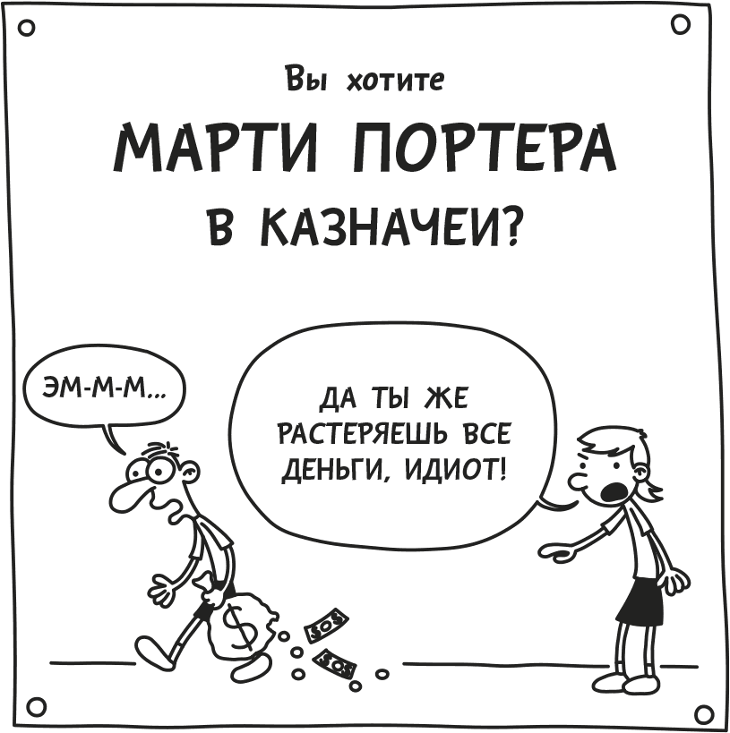 Сегодня я вписал своё имя в список кандидатов в казначеи. К сожалению, оказалось, что я не один такой умный. Марти Портер тоже решил управлять казной. Он здорово рубит в математике, так что для меня всё может сложиться не так легко, как хотелось бы.