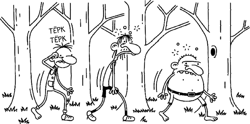 В лесу живёт шайка диких ребят, все называют их Минго. ЗИМОЙ этих Минго никто не видит, а когда они появляются ВЕСНОЙ, вид у них такой, будто они только что проснулись.