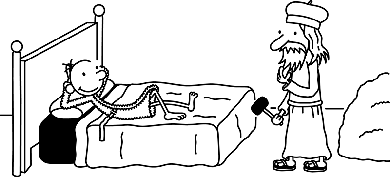 Как-то вечером я уснул под одеялом в своей комнате, а Родрик пожаловался на меня, потому что хотел, чтобы оно укрывало его, пока он будет есть свой завтрак. Мама придумала НОВОЕ правило, которое гласило, что если ты уснул под одеялом, то должен вернуть его в гостиную не позднее 8 часов утра.