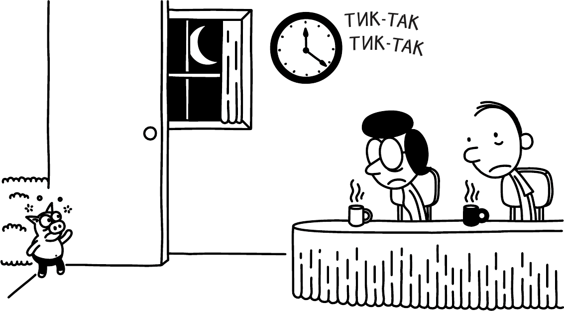 Теперь поросёнок приходит и уходит, когда захочет, и можно только ДОГАДЫВАТЬСЯ, где он проводит время. Хуже всего то, что мне нельзя гулять допоздна, а поросёнку МОЖНО.