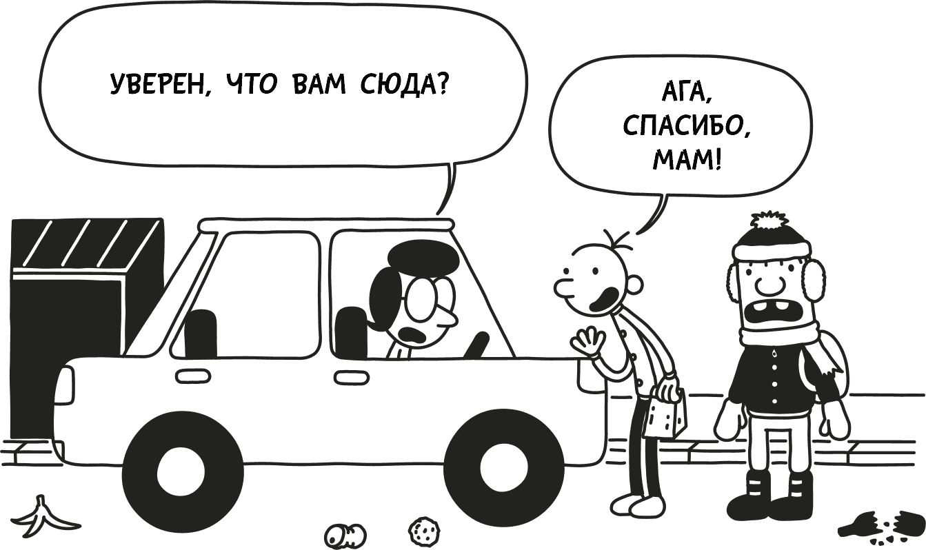 Урок насчёт мамы-водителя я усвоил надолго, так что теперь снова хожу пешком. Но когда мы с Роули топали сегодня домой, я понял, что так устал, что не смогу больше и шагу ступить. А ведь нам предстоял ПОДЪЁМ. Роули, как добрый друг, должен был бы донести меня на закорках – пришлось и это ему втолковать.