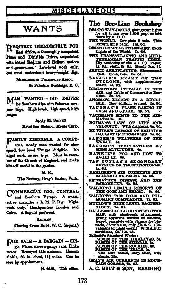 “Xavier returned from I do not know where at midnight, absorbed in calculations on the eternal question of his Aurora – la belle Aurore, whom I begin to hate. Instead of anchoring, – I had set out the guide-light above our roof, so he had but to descend and fasten the plane – he wandered, profoundly distracted, above the town with his anchor down! Figure to yourself, dear mother, it is the roof of the mayor’s house that the grapnel first engages! That I do not regret, for the mayor’s wife and I are not sympathetic; but when Xavier uproots my pet araucaria and bears it across the garden into the conservatory I protest at the top of my voice. Little Victor in his night-clothes runs to the window, enormously amused at the parabolic flight without reason, for it is too dark to see the grapnel, of my prized tree. The Mayor of Meudon, thunders at our door in the name of the Law, demanding, I suppose, my husband’s head. Here is the conversation through the megaphone – Xavier is two hundred feet above us: