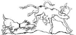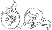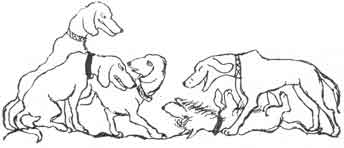 Он снова полез под калитку и куснул Жёлто-Белую Гончую со шрамами на щеках. Она жутко наморщила нос и сказала Охотничьему Терьеру много неприятного. Но драться не стала.