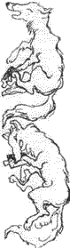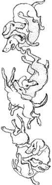 Я вскочил на ноги, и мы стали играть. Реведжер повалил меня на землю, перекатил с боку на бок, прижал лапами к земле и легонько куснул в шею. Я тоже куснул его прямо в щёку. Все гончие это видели! И тогда я гордо выпрямился и сделал несколько торжественных кругов по лужайке.