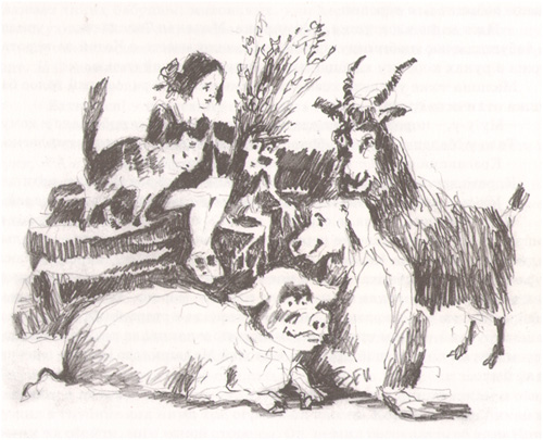Вспоминая эту и другие деревенские истории, коротали животные и их гости вечерок. Городским гостям всё было интересно. Евдокея, лежавшая у Катиных ног, заговорщически взглянула на девочку и тихонько, чтобы другие не слышали, хрюкнула ей: