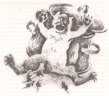 Наконец, бабушка взяла полотенце и, обернув им бедолагу-охотника, стала осторожно, лапа за лапой, снимать его с дедушкиной головы. Концом того же полотенца вытерла дедушкино лицо. Потом, держа завёрнутого Федота на руках, повела Семёна Ульяновича в летнюю кухню. Там стоял на печке чугун с тёплой водой. Пришлось среди ночи обоим устроить головомойку в самом прямом смысле слова.