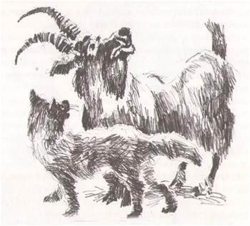 А Архипыч недовольно закашлял и с укоризной посмотрел на Кузьму Кузьмича. Пёс знал, что всё происходило совсем не так, как рассказал козёл. Очень уж он упрямый, Кузьма Кузьмич, крепколобый. А в молодости от его строптивого нрава все натерпелись.
