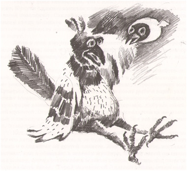 – Хро-хро-хро! – потянул лысый своих приятелей из магазина. ("Пойдем, мол, отсюда скорей!")