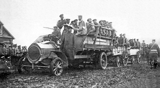 В начале XX века с появлением работоспособных конструкций самоходных безрельсовых повозок началась моторизация вооружённых сил практически всех держав, и Россия не была исключением.