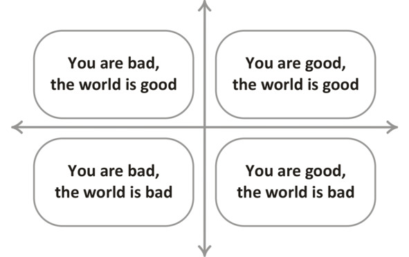 There are four ways of raising a child: “you are bad, the world is bad”, “you are bad, the world is good”, “you are good, the world is bad”, “you are good, the world is good”.