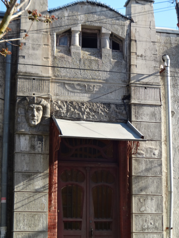 Входной портал собственного дома архитектора А. Л. Генриха с декором в египетском «вкусе» (фото автора, 2019 год)