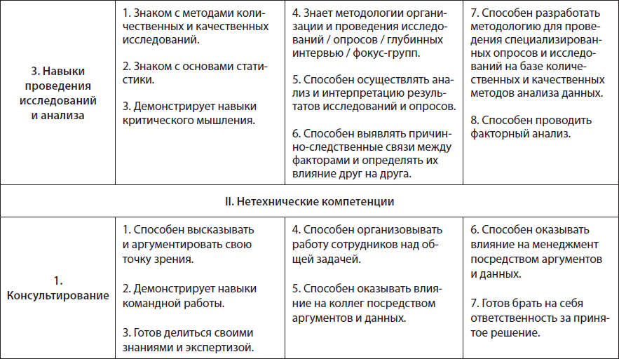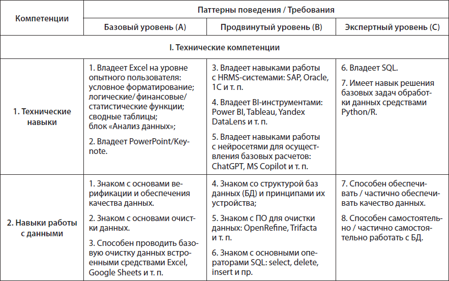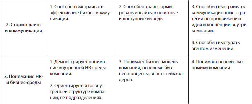 Таблица 1.2. Модель компетенций HR-аналитика, три уровня компетентности