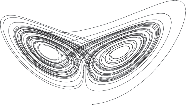 Позже, когда Лоренц более тщательно изучил этот феномен, он привел аналогию, ставшую затем хрестоматийной: что взмах крыльев чайки может вызвать заметные изменения погоды. Впоследствии чайку заменили бабочкой, а в 1972 году вышла его работа «Предсказуемость: может ли взмах крыльев бабочки в Бразилии вызвать торнадо в Техасе?»[10]. Позже всё это сократилось до всем известной «Теории бабочки» – отчасти из-за выбранного Лоренцем сравнения, а отчасти из-за того, как хаотические системы ведут себя в динамике (см. рис. 1.7).