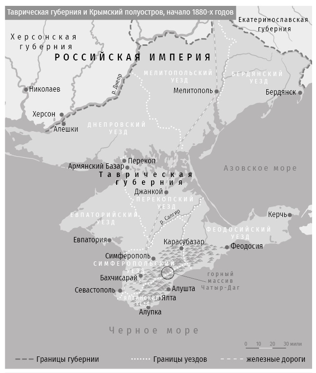 Во многих отношениях Крым был такой же глубинкой. Большинство городов были настолько же, если не более, провинциальными. В то же время с момента своего присоединения в 1783 году Крым стал ядром проекта имперского строительства в России: в то время как преобразование инфраструктуры и различных сооружений, от садов до религиозных и светских зданий, помогло воплотить имперскую идею в материальном плане, дискурсивно полуостров был включен в состав имперского центра315. Для обеспечения структурного единообразия империи уже в 1784 году Крым присоединен к новообразованной Таврической области, позже переименованной в Таврическую губернию (см. карту 3). Название «Таврическая губерния», указывающее на связь с древней цивилизацией тавров, окутанной легендами, подчеркивало европейское прошлое Крыма и тем самым позволяло отвергнуть притязания Османской империи на полуостров. Эта политика была частью более широкого «Греческого проекта» Екатерины II, в соответствии с которым постройки и памятники воплощали и прославляли эллинское наследие Крыма, а крымскотатарские, турецкие и казацкие географические названия заменялись греческими316. Так возникла новая столица – Симферополь (бывший Ак-Мечеть), а также Севастополь (Ахтиар), Евпатория (Кезлев) и Феодосия (Кафа). Греческие купцы сыграли ключевую роль не только в заселении завоеванного черноморского побережья и новых городов, таких как Одесса, где греческий, наряду с итальянским, стал одним из основных языков, но и в поддержании связей Крыма с Эгейским миром317. И все же, поскольку большая часть татарского культурного ландшафта – мечети, святыни и другие исторические места – осталась нетронутой, а отношения с Османской империей продолжали быть прочными, Крым также сохранял ощутимое татарское влияние. Таким образом, полуостров одновременно выполнял несколько функций: он был связующим звеном России с черноморским и средиземноморским пространствами; он был первым «Востоком» империи и, таким образом, служил для России своеобразным свидетельством ее принадлежности к Западу318; также он представлял собой экспериментальное пространство для быстро развивающихся методов и стратегий имперского строительства.