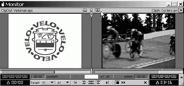 Если вы не являетесь профессиональным монтажером с опытом работы на монтажных комплексах, возможно, вам будет удобнее использовать окно Monitor (Монитор) в режиме одинарного вида для просмотра кадров фильма, а исходные клипы просматривать в окне Clip (Клип). Режим двойного вида и тримминга больше напоминает работу на таких комплексах.
