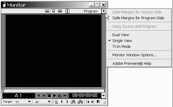 ♦ Single View (Одинарный вид) – применяется для просмотра кадров фильма в единственной отображаемой области Program (Программа).