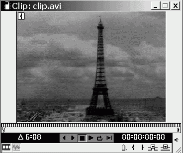 Окно Clip (Клип) (рис. 1.35) служит для просмотра отдельных клипов из окон Project (Проект) или Timeline (Монтаж). Чтобы открыть клип в окне Clip (Клип), следует дважды щелкнуть на нем (в окне Timeline (Монтаж)) или на сопровождающей его пиктограмме (в окне Project (Проект)). Кроме того, разрешается просматривать и содержимое внешних файлов, не импортированных в проект, командой File | Open (Файл | Открыть).