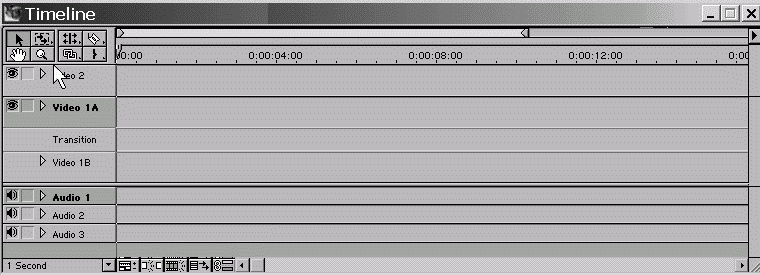 Щелчок на кнопке панели инструментов выбирает тот или иной инструмент в качестве рабочего. При наведении указателя мыши на какую-либо область окна Timeline (Монтаж), где можно использовать этот инструмент, он приобретает вид пиктограммы с кнопки выбранного инструмента.