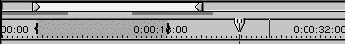 Рис. 1.37. Полоса выбора рабочей области, индикатор предварительного просмотра и шкала времени с выделенным маркерами фрагментом фильма окна Timeline (сверху вниз)