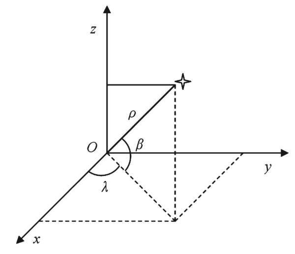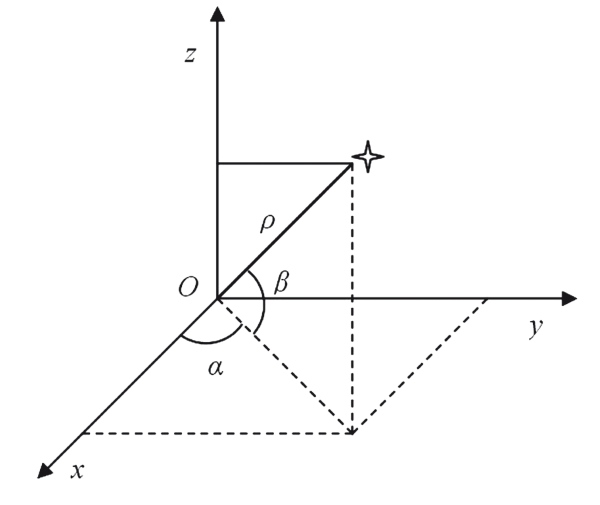 В свою очередь, ось Оz совпадает с осью вращения Земли, перпендикулярна плоскости Оху экватора и направлена к полюсу экватора. Полюс экватора (полюс мира) – это центр круга экватора, почти совпадающий с Полярной звездой. Угловое расстояние между полюсами экватора и эклиптики, очевидно, тоже составляет величину ε. Координатами звезды в экваториальной системе являются расстояние до нее ρ и углы α, β.