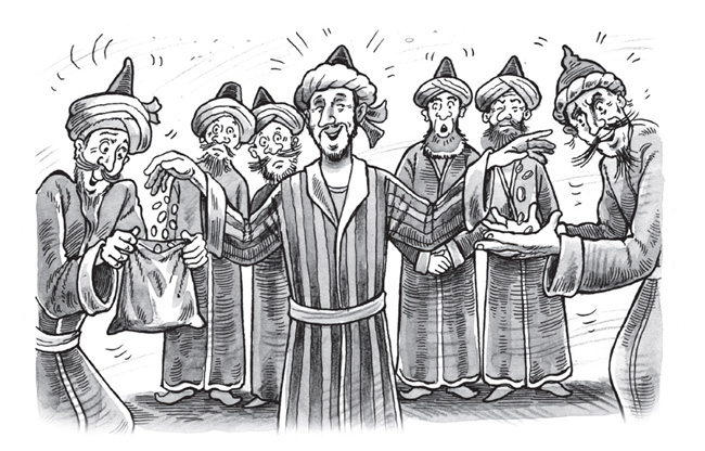 Внутренний голос Насреддина предупреждающе произнёс: «Не суйся в этот богопротивный кружок. Они каждый вечер обирают доверчивых простаков. Вовлекают в игру, дают возможность выиграть несколько монет и пускают по миру. Случается, без чалмы и халата. Останешься с носом».