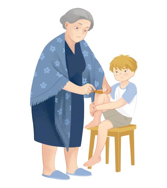 Мальчик повернулся спиной, и врач пощупал ему спину, особенно там, где лопатки. Было щекотно.