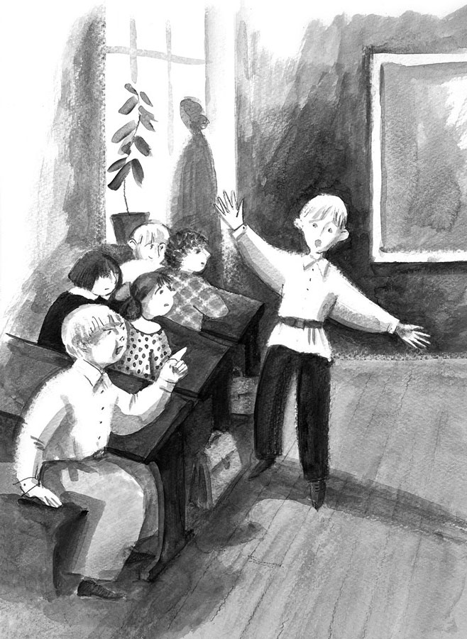Вот странная. Нет, она хорошая, но странная. А еще мы за одной партой сидим, и она меня это… контролирует. Ольга Яковлевна посадила нас вместе, чтобы «Соня меня контролировала, потому что я отвлекаюсь и мечтаю». Это учительница так сказала. На самом деле Сонька еще хуже мечтает. Однажды Ольга Яковлевна ушла куда-то, а у нас еще один урок оставался. И она задание дала, чтобы мы его делали и тихо сидели. Никто, конечно, тихо не сидел и задание не делал. Все шумели и смеялись. А Сонька сидит и пишет. И у нее слезы текут. Я к ней в тетрадь заглянул, а она не задачу решает, а стихи пишет: