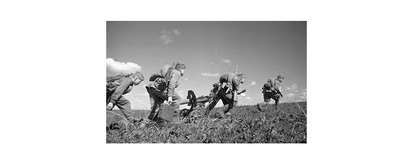– В дивизию я попал с маршевой ротой в мае 43-го. В день проходили до 30 километров, трое по дороге попали в госпиталь, от жары и усталости, один из них помер. Чем ближе к передовой, тем чаще попадались идущие навстречу легкораненые, довольные своей судьбой. Слева и справа грохот, тучи дыма. А я ещё не знал ни страха, ни боли. В роте я был самым маленьким. Сначала у меня была винтовка, а потом на марш-бросок дали пулемёт.