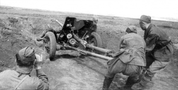 – Все роты поднялись дружно и к реке передвигались очень быстро, бегом. Я вместе с радистом и связными от рот стал передвигаться вслед за ними. В это время я заметил, как впереди, справа за лощиной, ведущей к реке, на возвышенности, из побитого танка бьёт пулемет. Я подбежал к противотанковому орудию, которое оказалось поблизости, и приказал подавить пулемёт. Первый же снаряд попал прямо под танк. Приказал для гарантии дать ещё выстрел – пулемёт больше не стрелял. Я стал перебежками продвигаться к реке, чтобы лучше видеть поле боя и ориентироваться в обстановке.