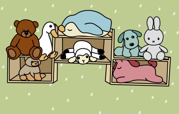 В этом волшебном месте находились три совершенно разных кролика: сиреневый рюкзачок-кролик был большим и вместительным, бежевый кролик был среднего размера и рядом маленький розовый крольчонок. Они никогда не общались, да и не знали о существовании друг друга. Кролик-рюкзачок любил путешествовать. Он побывал на всех полках и во всех уголках большого помещения, но был рассеянным и поэтому не на всё обращал внимания. Бежевый кролик любил, развалившись на самой высокой полке смотреть на всех свысока и хмуриться, когда огромные корабли и самолёты начинали закрывать весь обзор. Ему интересно было не только наблюдать, но и предполагать кто выйдет победителем и что именно сегодня будет происходить внизу. А розовый крольчонок веселился с куклами и плюшевыми игрушками, он любил спокойные игры и чаепития.
