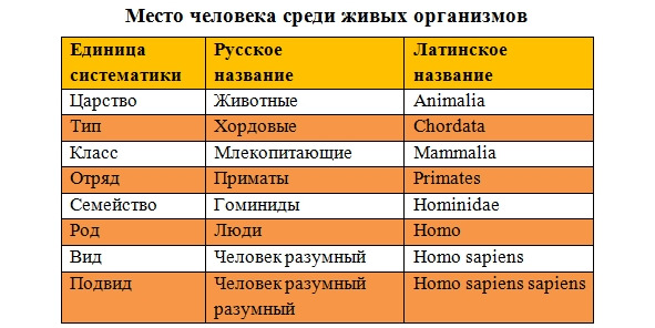 Просмотрев таблицу снизу вверх, вы можете понять, кто наши ближайшие родственники в животном мире.