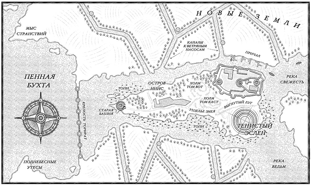 ХэрриотКрик боли улетел в жемчужное небо и, как морская птица, поплыл на крыльях ветра над Тарнсхедом. Роджер Хэрриот даже не обернулся; сегодня утром он слышал много криков и знал, что услышит не меньше еще до заката. Вместо этого он принялся внимательно разглядывать западную башню замка Фидерек, возвышавшуюся по левую руку от него. Стены из белого камня, заросшие у основания изумрудной травой, тянулись ввысь, заслоняя собой море, но там, где они, снижаясь, сбегали к городу, становились видны серо-зеленые волны. Вдоль склона колеблемые ветром деревья дружно вытягивали ветви, словно пытаясь выхватить из воздуха невидимую добычу. На корявых ветках висели необычные плоды, и ему стало интересно, смог бы он угадать, что это за плоды такие, если бы уже не знал этого наперед.