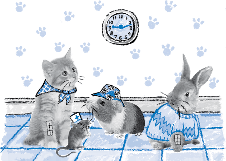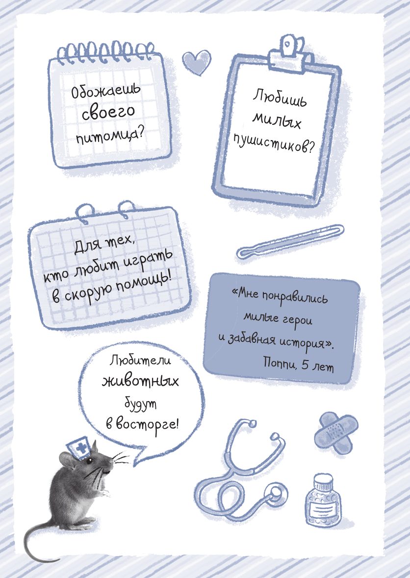 – Я сбрею немного шерсти на лапке или на спинке, – заверил пациентов Доктор Кот. – Будет совсем незаметно. Арахис, ты первый, идёт?