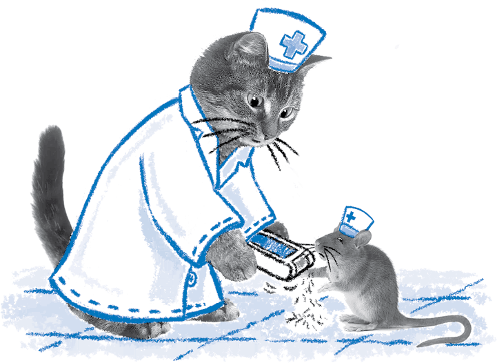 – Немного неприятно, но совсем не больно, – заверил его Арахис. Он чувствовал себя настоящим смельчаком, наблюдая за тем, как Доктор Кот повторяет процедуру с пятью остальными пузырьками. Мышонок заметил, что каждый раз Доктор берёт новую иглу, а использованную бросает в специальную корзину.
