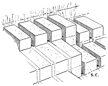 Рис. 1. Схема, на которой изображен способ вырубания блоков из скалы