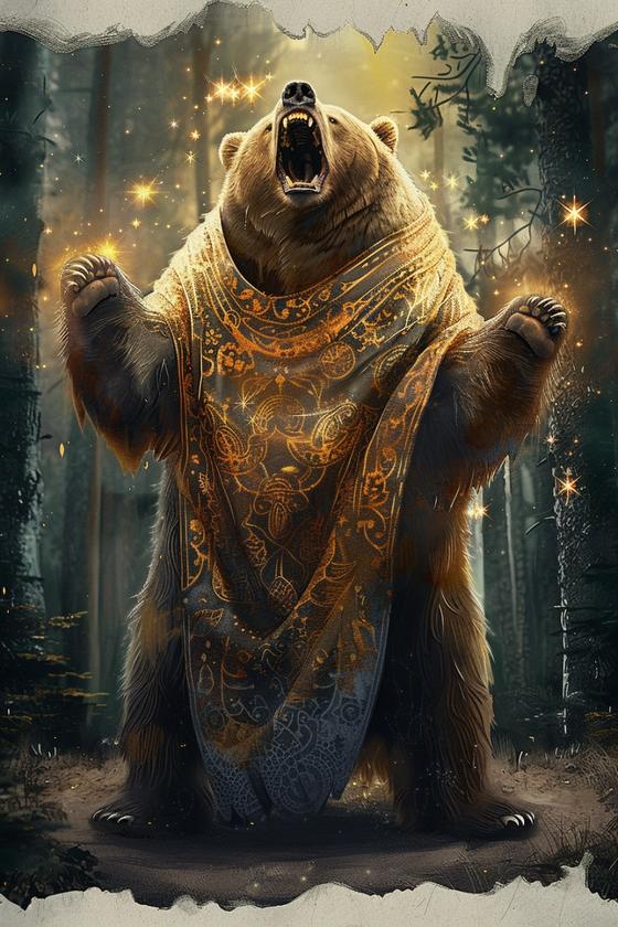 Но самое странное – его шерсть. С виду самая обычная, бурого окраса, достаточно плотная, чтобы согреть в холода и спасти от косого укуса, она… сверкала?! Нет, Арди так лишь показалось. Сверкала вовсе не шкура медведя, а то, что покоилось поверх неё. Будто медведь своей могучей лапой сорвал лоскут с западного неба, лишь едва-едва обласканного Духом Дня. Сине-золотое одеяние, усыпанное засыпающими звездами, украшенное узорами весенних ветров, парящих среди сияния уходящей ночи.