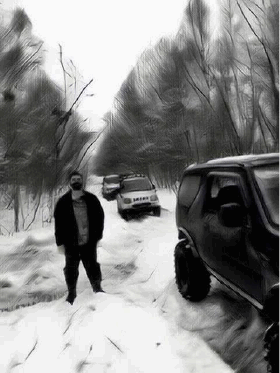 – Ну, вот так… Догоняющие нас Tvei, Praid и ParakaVN большую скорость развить не могли. Решили мы с VADом и Добрым идти дальше. Но… видать, не судьба. Снег подтаял, стал липким. VAD проваливался все глубже и чаще. Наступил момент, когда за тридцать минут мы не смогли пройти даже десяти метров. можно было еще раз переставить машины, пустив «Джима» вперед, но… кроме меня, уже некого было «пускать». На этом решили остановиться, ждать джимниводов, шашлычить и возвращаться прежним маршрутом.